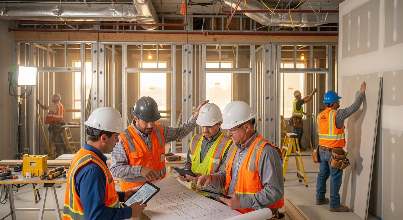 Tenant finishes, office rebuilds, and space modernization drive leasing success. Commercial construction management requires coordination with occupants, vendor scheduling, and rigorous project oversight.