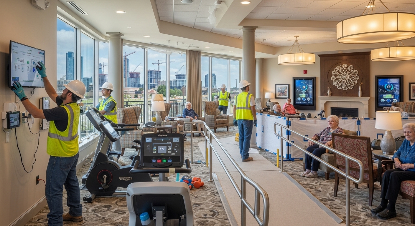 Construction management experts report that wellness amenities now extend far beyond traditional approaches. Indoor pickleball courts, golf simulators, and infrared therapy rooms are becoming standard features in high-end renovations. These upgrades require specialized contractors who understand both the technical requirements and the unique needs of senior residents.